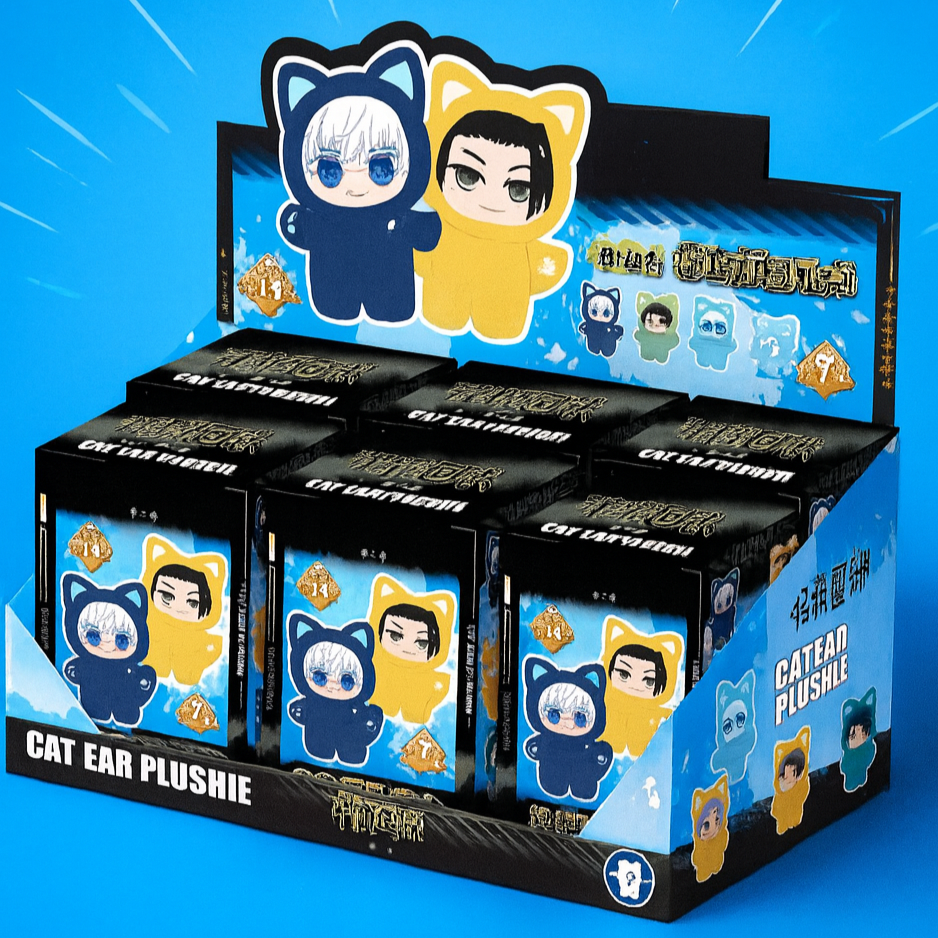 Von Gojos Charme bis Tojis Coolness – unsere Cat-Ear-Plushies bringen deine Jujutsu-Kaisen-Favs im süßesten, weichsten Look zu dir nach Hause. Unbox die Überraschung und erweitere deine Anime-Sammlung mit jedem Öffnen. Welche Figur bekommst du heute?